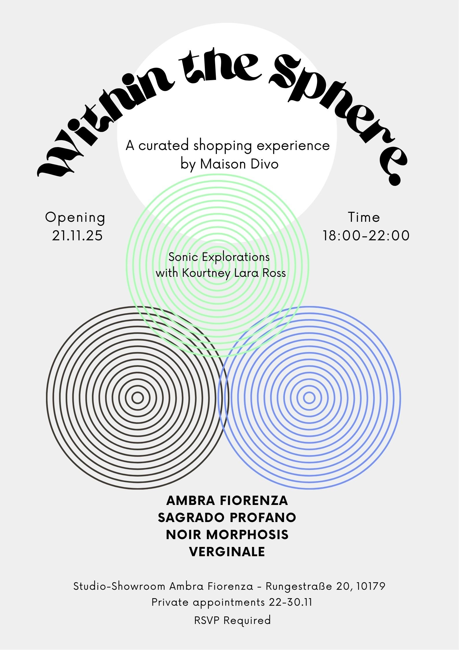 Within the sphere, the spark of creation ignites. Join us on Friday, November 21, 2025 for an evening of fashion, art, and community as we welcome you to Ambra Fiorenza’s gorgeous studio and showroom.